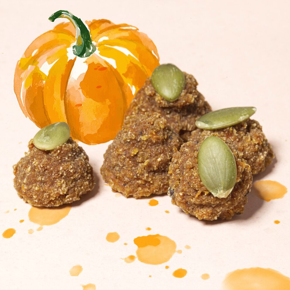 Тыква, рябина, яблоко, топинамбур, гриб лисичка, кокосовая мука, кэроб, чага, фермерское яйцо, молозиво, тыквенные семечки, корица.